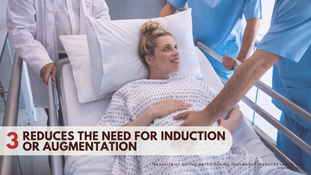 By promoting natural labor onset and cervical readiness, dates may lower the likelihood of needing labor induction or augmentation, such as the use of Pitocin or other medical interventions.