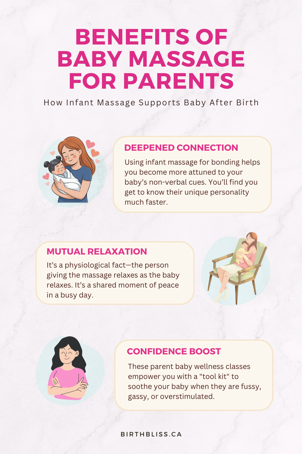 - Deepened Connection: Using infant massage for bonding helps you become more attuned to your baby’s non-verbal cues. You’ll find that you get to know their unique personality much faster.