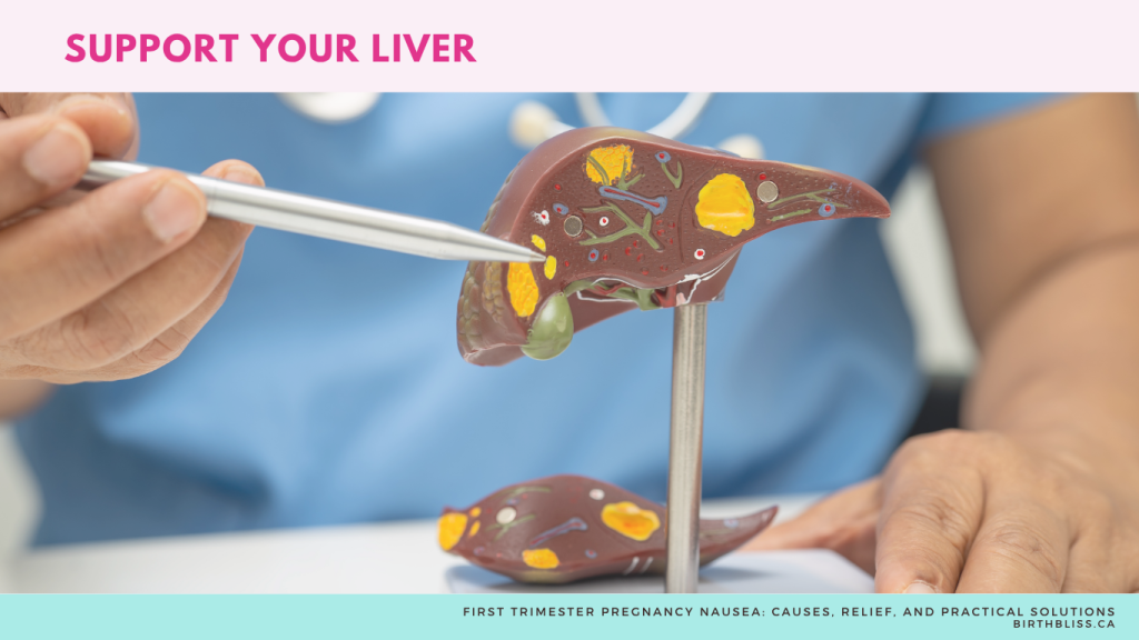 Your liver processes all those extra hormones. Gentle movement, such as prenatal yoga twists (modified for the first trimester), can support your natural detoxification pathways.