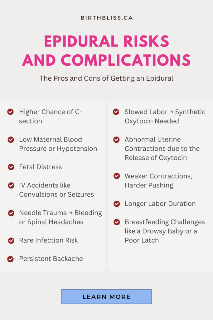 - Higher cesarean section rates – Studies show a correlation between epidurals and increased surgical births.