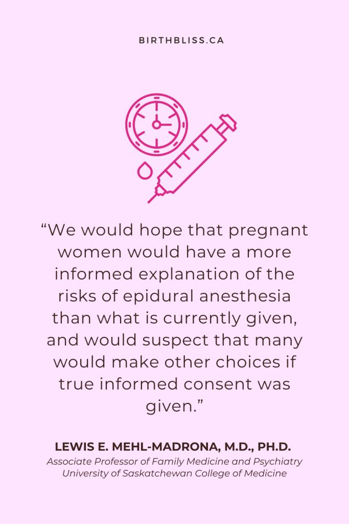 “Women are almost never given informed consent for epidurals… The facts about the risks of epidural anesthesia are astonishingly hidden from women in labor.” Read more here.