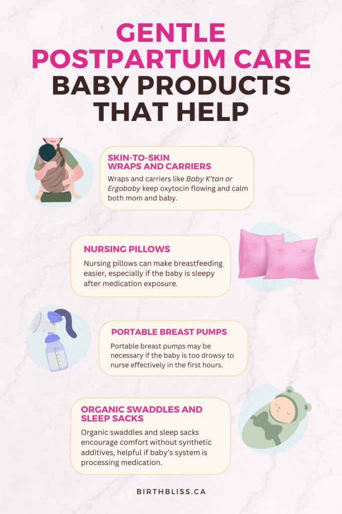 - Skin-to-skin wraps and carriers (like the Baby K’tan or Ergobaby) keep oxytocin flowing and calm both mom and baby.